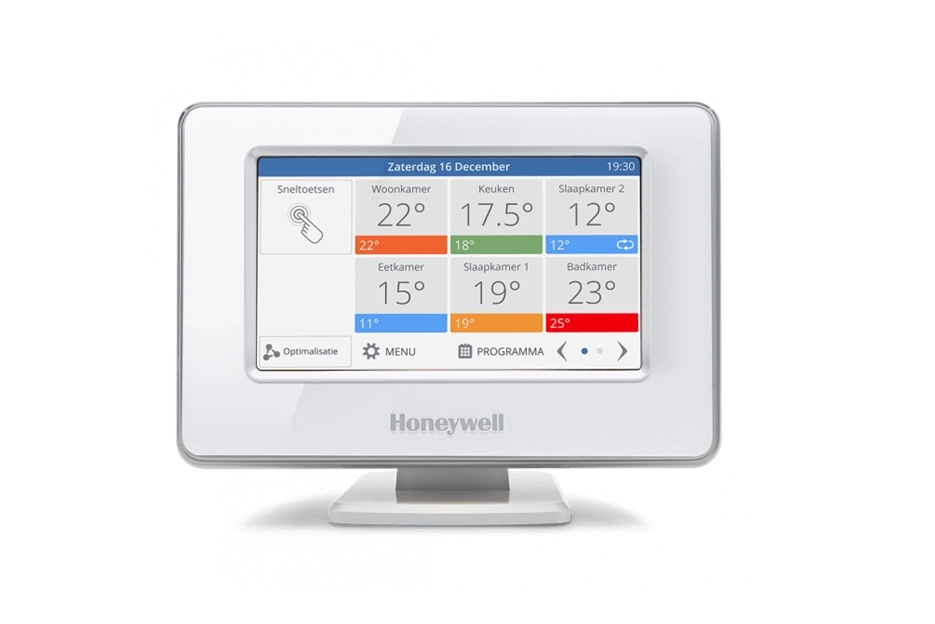 Een handmatig te bedienen Round-thermostaat maakt standaard deel uit van de set, maar indien gewenst kunt deze tegen een meerprijs aanpassen naar een evohome bedienpaneel of een draadloze DT4-thermostaat in de kleuren zwart, wit of grijs.