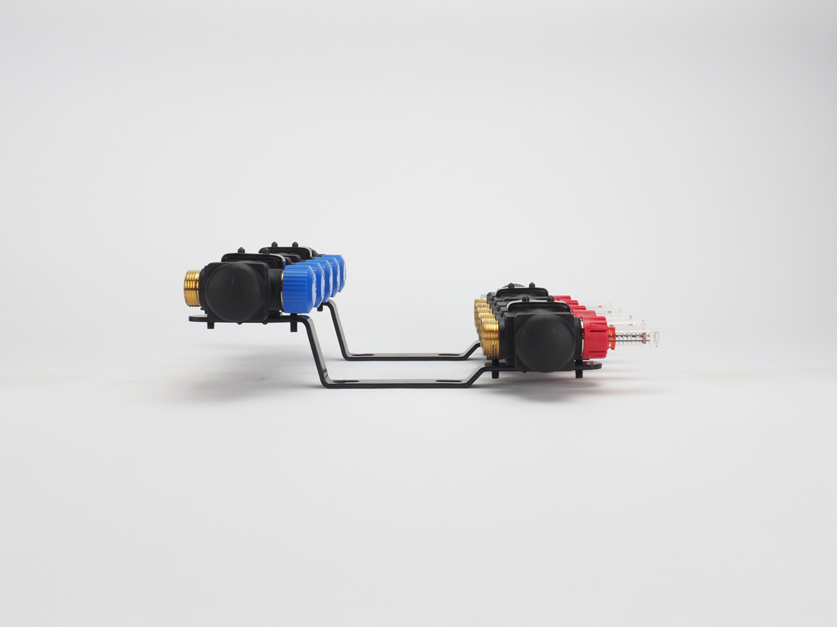 Deze uitvoering van de MAGNUM EcoFlow open kunststof verdeler bestaat uit een kunststof module uit één geheel. Deze module is vervaardigd van een met glasvezel versterkte polyamide, waardoor hij bestand is tegen zowel hoge als lage temperaturen. Dit maakt deze verdeelunit uitermate geschikt voor zowel verwarmen als koelen, bijvoorbeeld in combinatie met een hybride warmtepomp die in de winter warmte levert en in de zomer koelt. Standaard is deze basis uitvoering voorzien van een handmatige ontluchter en inregelbare flowmeters.