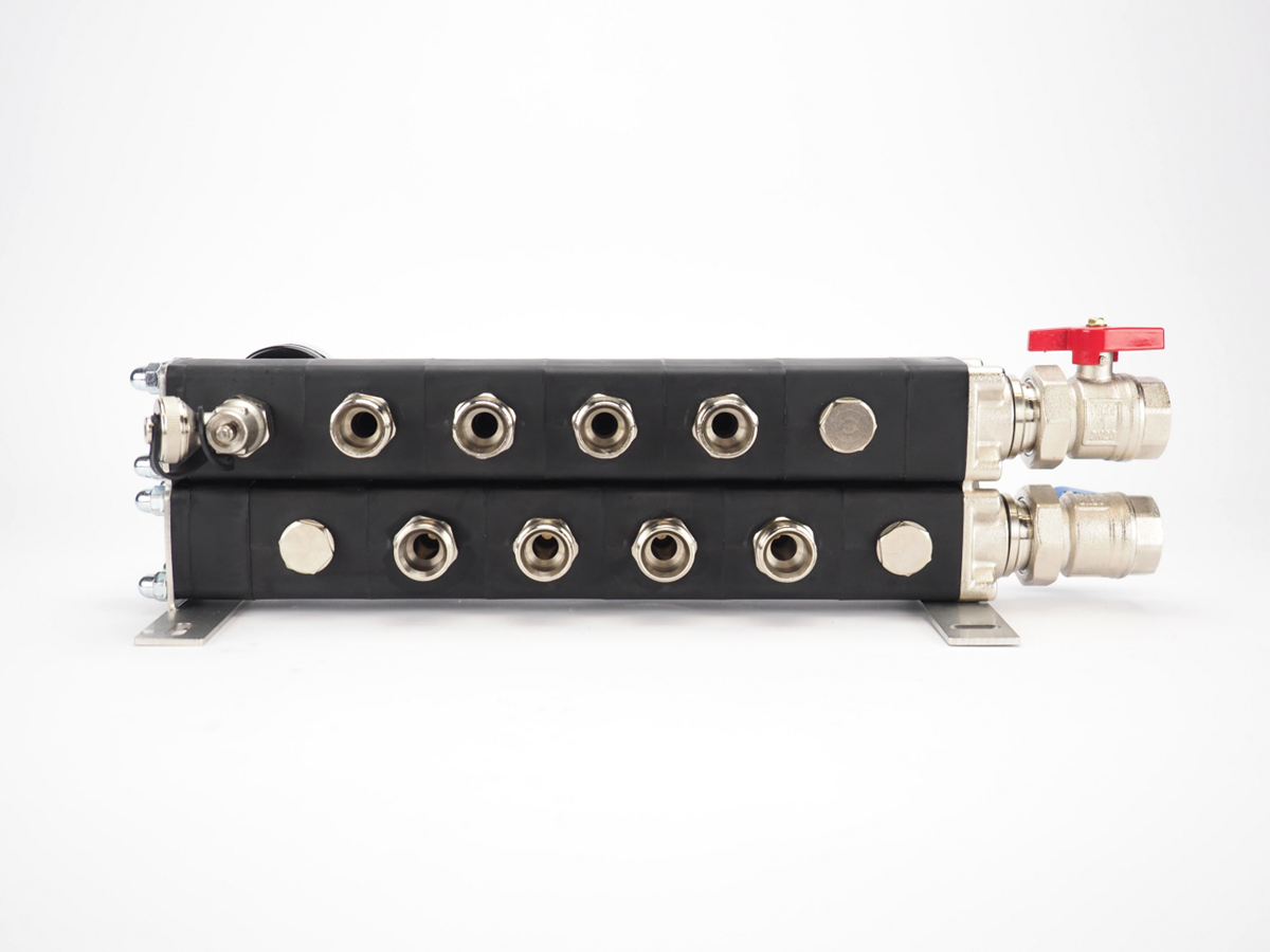 De losse elementen zijn vervaardigd van een met glasvezel versterkte polyamide, die zeer geschikt is voor hoge, maar ook lage temperaturen. De elementen hebben een dubbelwandige opbouw waardoor automatisch een isolatielaag wordt gevormd. Dit maakt deze verdeler uitermate geschikt voor verwarmen, maar ook voor koelen. Door deze isolatielaag ontstaat nagenoeg geen condensvorming op de verdeler. Deze verdeler wordt daarom steeds vaker toegepast in combinatie met een warmtepomp, die in de winter verwarmd en in de zomer koelt. Standaard is deze verdeler voorzien van 1” kogelkranen en inregelbare flowmeters.