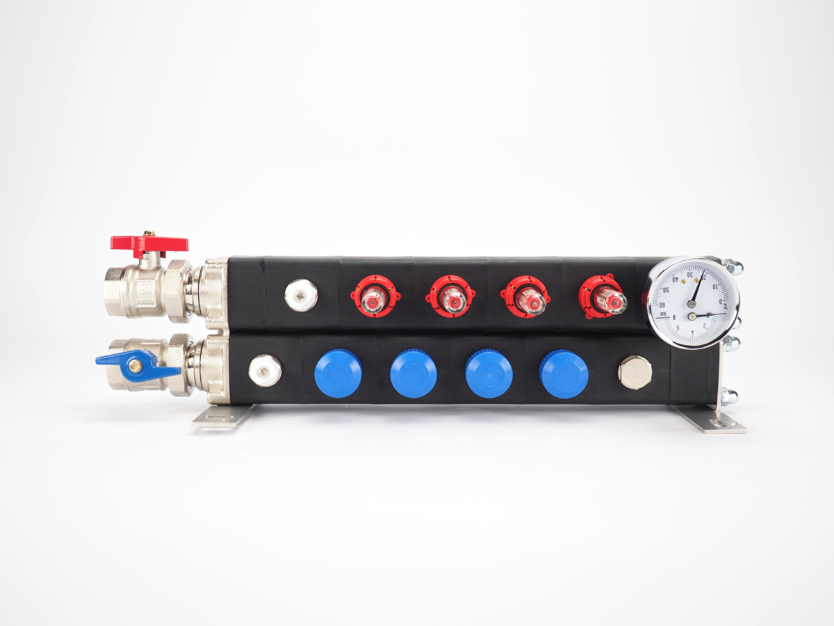 Sterke kunststof vloerverwarming verdeler van losse componenten met flow-meters inbegrepen;