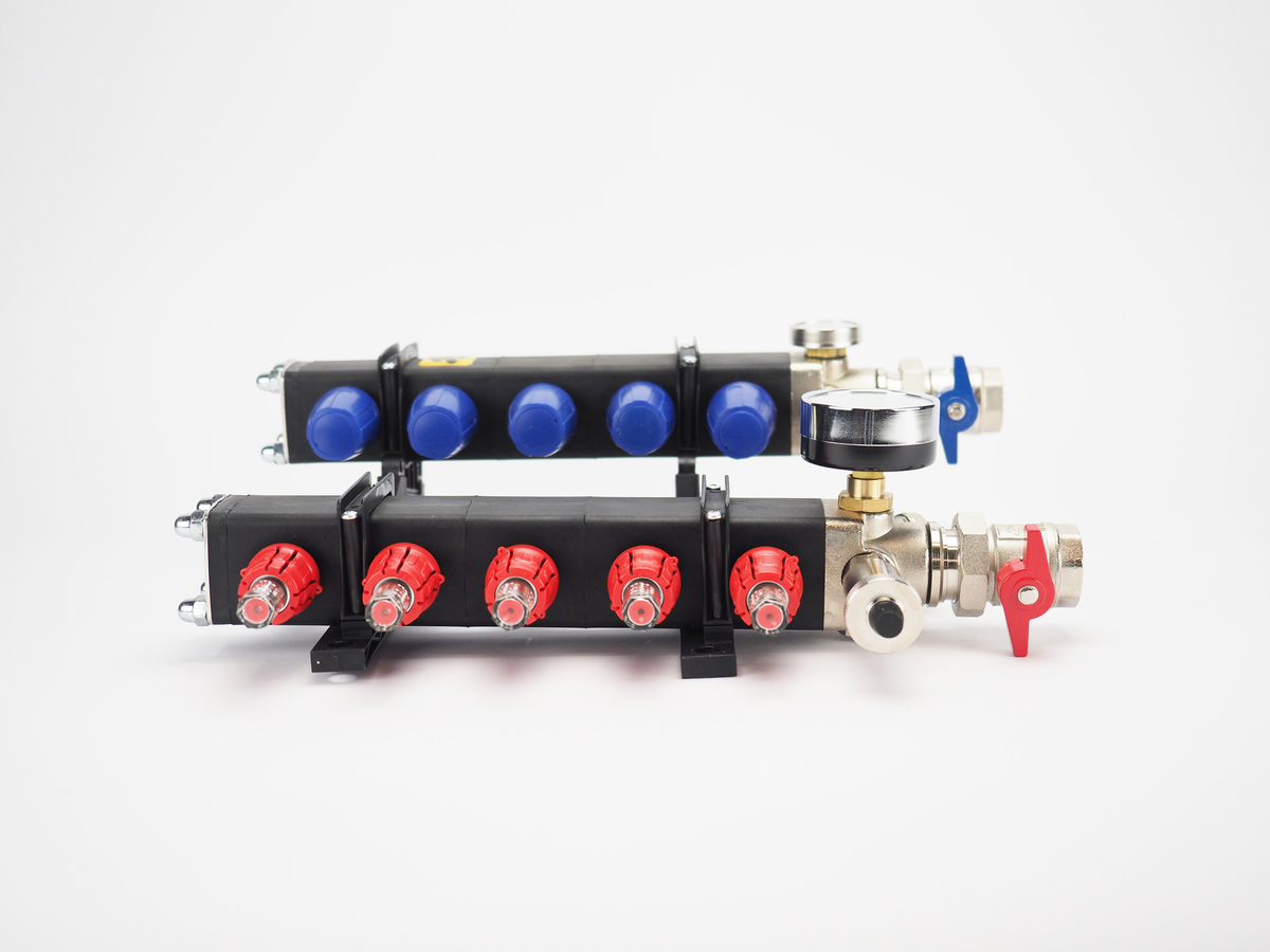 Sterke kunststof vloerverwarming verdeler van losse componenten met flow-meters inbegrepen;