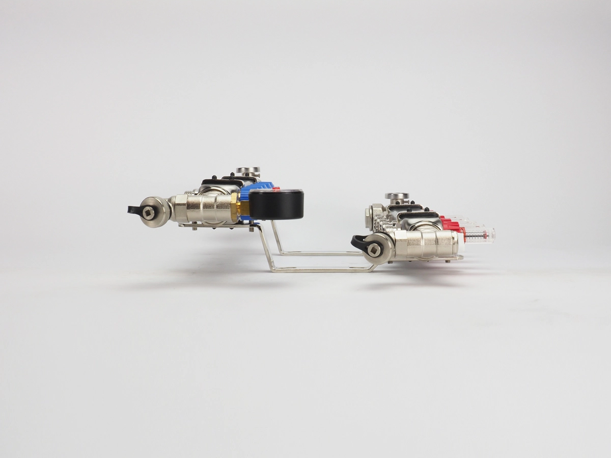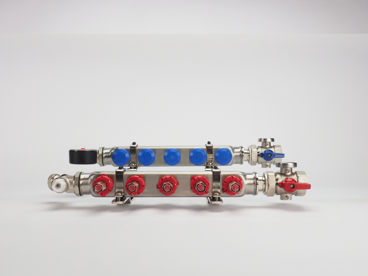 Dit type verdeler kan geschikt gemaakt worden voor verwarmingssystemen met hogere aanvoertemperaturen vanaf 50°C door middel van de temperatuurregelaar.