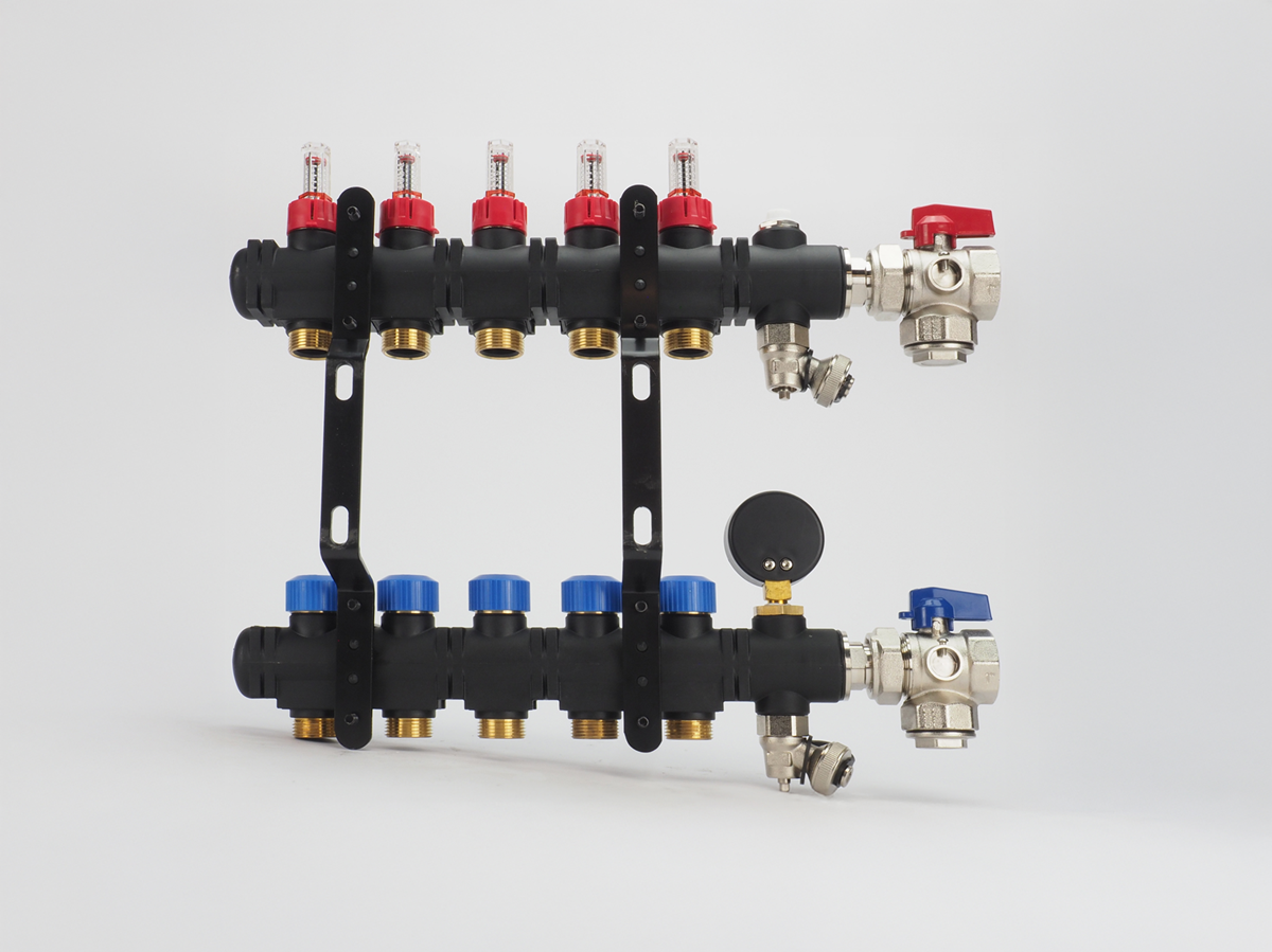 De MAGNUM EcoFlow open kunststof verdeler bestaat uit een kunststof module uit één geheel. Deze module is vervaardigd van een met glasvezel versterkte polyamide, waardoor hij bestand is tegen zowel hoge als lage temperaturen. Dit maakt deze verdeelunit uitermate geschikt voor zowel verwarmen als koelen, bijvoorbeeld in combinatie met een hybride warmtepomp die in de winter warmte levert en in de zomer koelt. Standaard is deze verdeler voorzien van 1” kogelkranen, een handmatige ontluchter en inregelbare flowmeters.