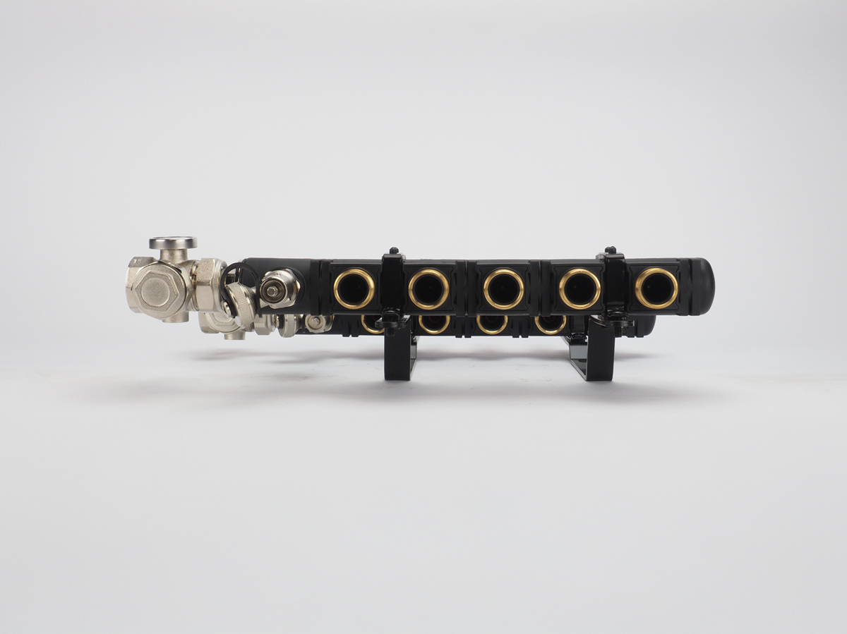 De MAGNUM EcoFlow open kunststof verdeler bestaat uit een kunststof module uit één geheel. Deze module is vervaardigd van een met glasvezel versterkte polyamide, waardoor hij bestand is tegen zowel hoge als lage temperaturen. Dit maakt deze verdeelunit uitermate geschikt voor zowel verwarmen als koelen, bijvoorbeeld in combinatie met een hybride warmtepomp die in de winter warmte levert en in de zomer koelt. Standaard is deze verdeler voorzien van 1” kogelkranen, een handmatige ontluchter en inregelbare flowmeters.