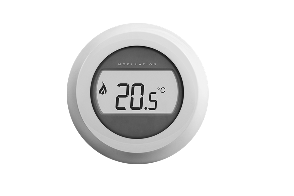 De thermostaat wordt bedraad gevoed en beschikt over displayverlichting.
