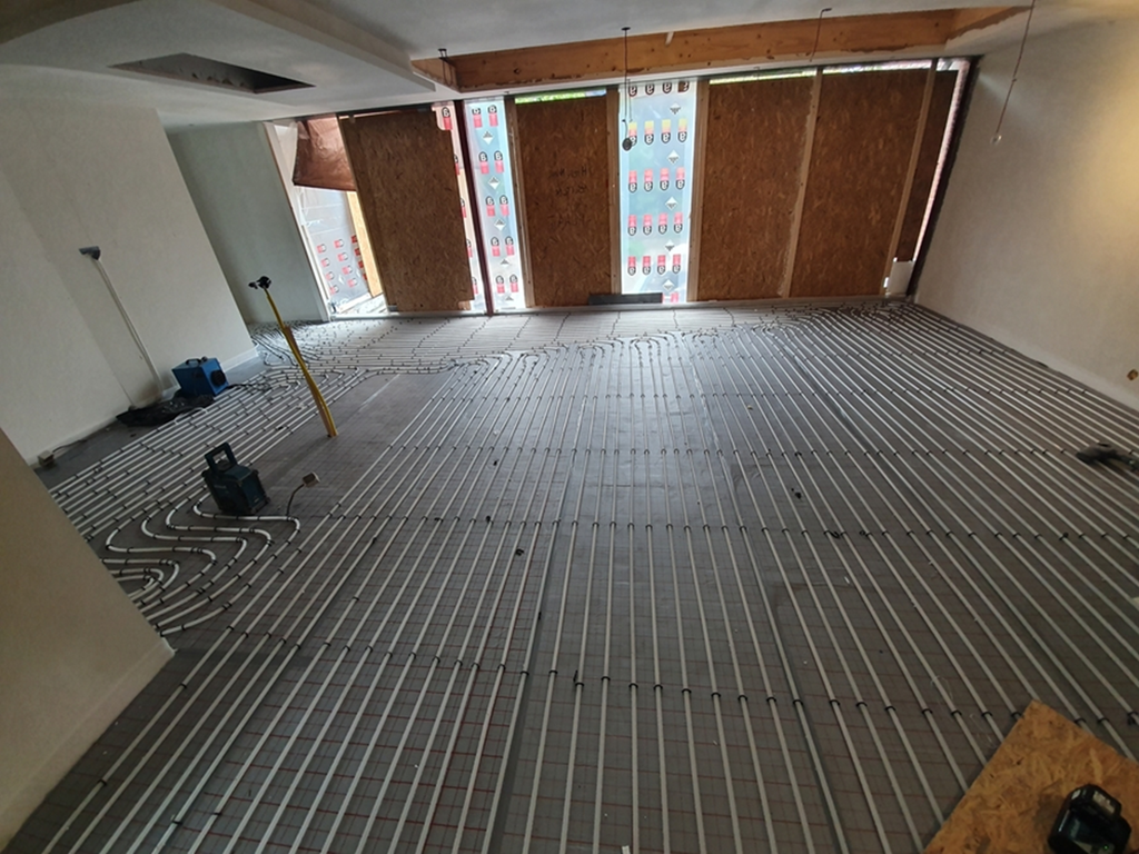 U kunt er ook voor kiezen om eerst bevestigingsrails te plaatsen over de isolatieplaten, waarna u de verwarmingsbuizen hier eenvoudigweg in vast klikt.